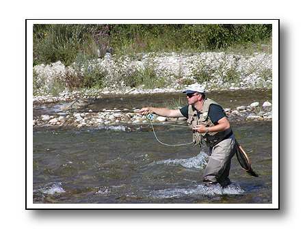 The basic method of fishing with Czech nymph is the so called short nymph (rolled nymph). When using this method we are catching fish practically under the tip of the flyfishing rod and commonly without making use of the flyfishing line, the end of which does not touch the water surface in most situations. After casting upstream we leave our flies sink to the bottom gradually and follow their movements downstream with the tip of the rod. We keep the rod in the hand with the arm stretched in front of us all the time. When the flies reach the area under our site, we lift the flies from the bottom with a movement of the rod upwards and cast again.
