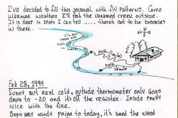 I will go ahead and nominate for the outstanding entry the project's brainchild and long-suffering swapmeistress (sic?) Sue Kreutzer. Her production is an extraordinarily well done five page long fictional diary/tying instructions, hand written, extensively and whimsically hand decorated, even hand colored AFTER reproduction. An inspired effort! To all who awakened those skills which seem to be either underutilized or dormant, be they simple stick drawing, attempts at artistic illustration, computer work sufficient to illustrate technical documents, or downright art, congratulations. My biggest problem now is how to preserve and display this magnificent effort in a worthy manner. I'm not sure anybody will try to do this again, as I'm sure Sue is worn out by the effort, but if they do I will sign up and I recommend you do so also.