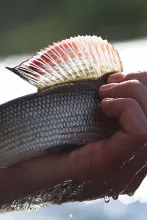We took one grayling to do an autopsy to help us crack the code. We also took many photos of its fin, and we ate the filets as an entree so it did not die in vain.