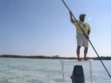 While comfortably casting from the boat to the big ones, I forgot that in the meantime Inch was doing his poling job in the back of the boat and when I saw one of them coming from the other side, my fly hooked the poor man's shoulder on my full #8 weight double hauled forward swing. Oops!