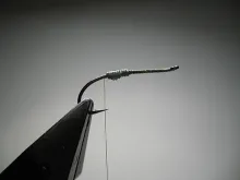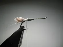 In a magazine an article showed a technique called "the aura technique" where the thread was dubbed and looped. A second and lighter dubbing material was added in the loop. That looked interesting too and when I read an article about mysis and studied some by myself I tied The Junior Mysis. The result was maybe more a shrimp than a mysis imitation.