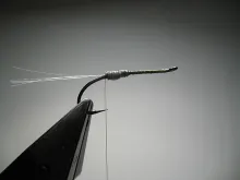 3. On top of the tail, tie in a bunch of short marabou or use the fluffy part of a grizzle hackle - the part which is often being thrown out..