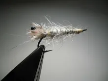 A fly tied for sea trout in the Baltic area. It proved to be efficient in other places too. Translucent and yet colored. Tie it in olive, rusty or tan and you can imitate any camouflaged mysis—and it will stand out from the crowd. Can be tied by seniors too...