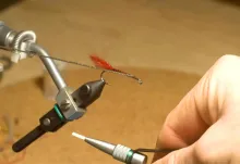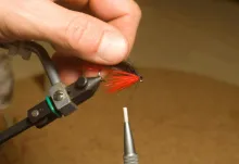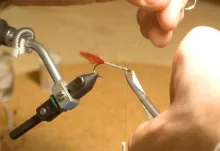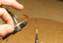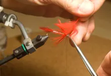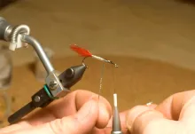 This sequence shows how to tie the fly with a wing in several sections, This gives a nicer, drop-shaped wing, but also requires more tying steps. You can tie the wing in a single section if you're lazy...