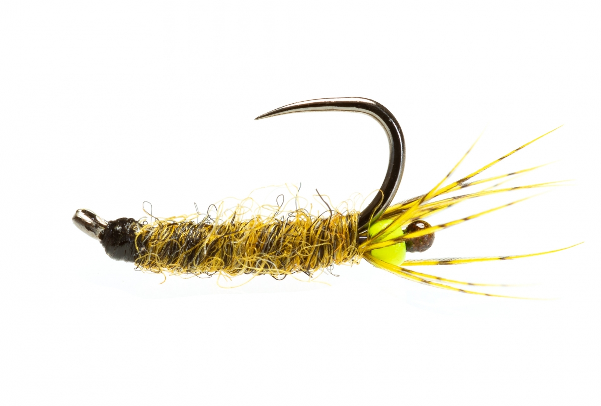 A scaled-down version of the author’s own Headbanger Caddis, a cased nymph caddis pattern