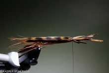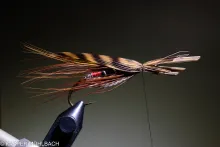 To make the fly perfect the wing should be tied spey style, lying flat over the underwing as a roof.
