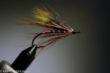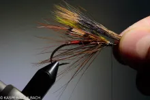 For the clear, peaty water I found the Ullsock to be too dark and gloomy in many cases while the hot-headed orange GP had too much of an effect. I missed a fly right in between, and during the winter of 1982 I tied the Mörrum Fly, which contains elements from both flies.