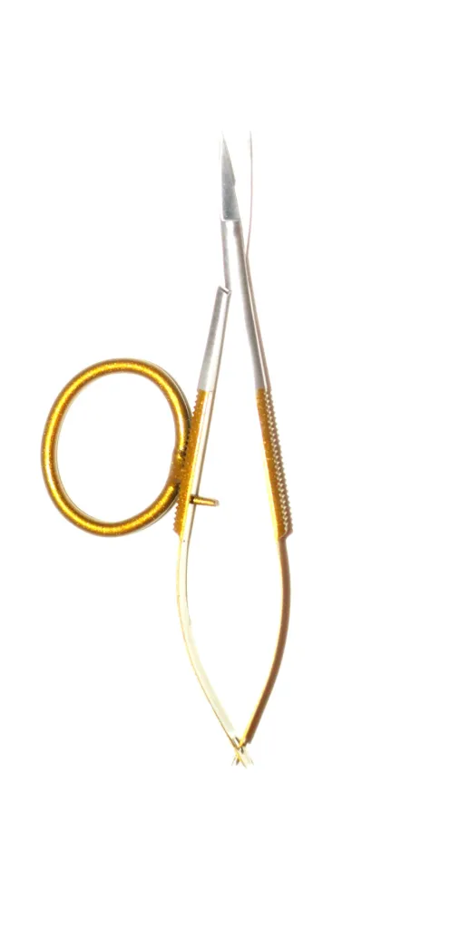 These are Pakistan made 6th finger scissors, spring loaded and meant to be held in the hand while tying