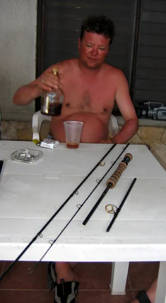 The rhum might be needed to settle down after having broken this custom built 10 weight rod in several pieces when setting the hook on a baby tarpon.