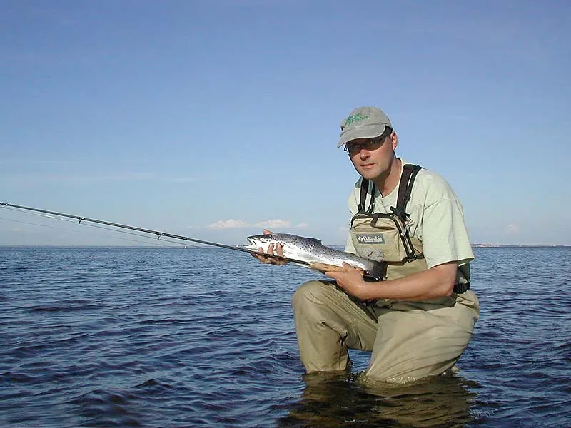 This nice sea trout took the fly while I was fishing for garfish a bright sunny day in Oeresund close to Copenhagen.