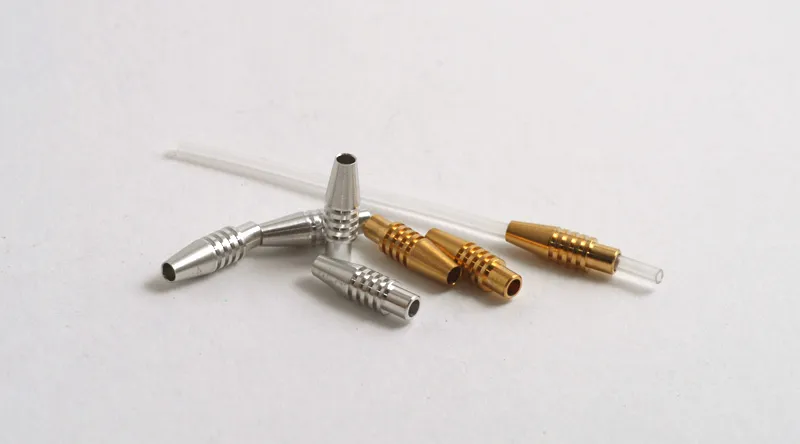 Comes in light aluminum and heavier brass. You tie on the thin inner tube.