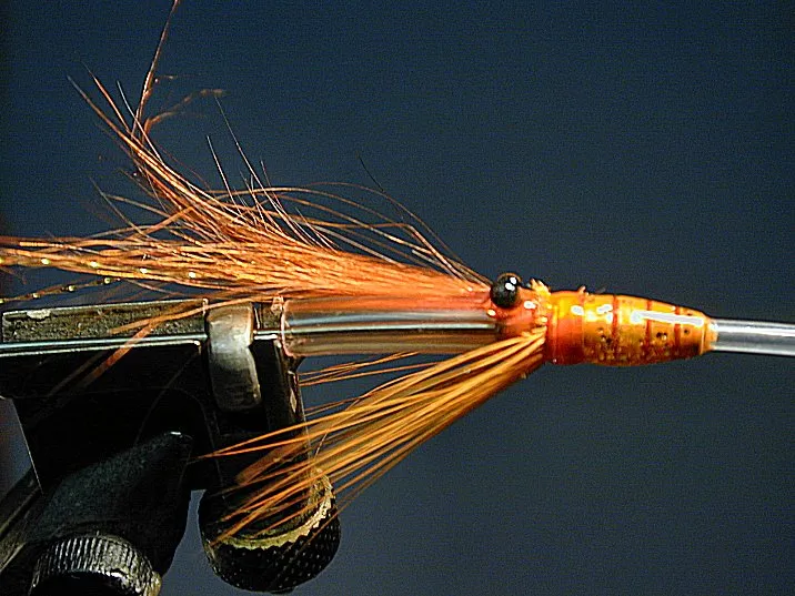 Tie in facing forward, and cut off the top barbs of the hackle so that the eyes show more predominately