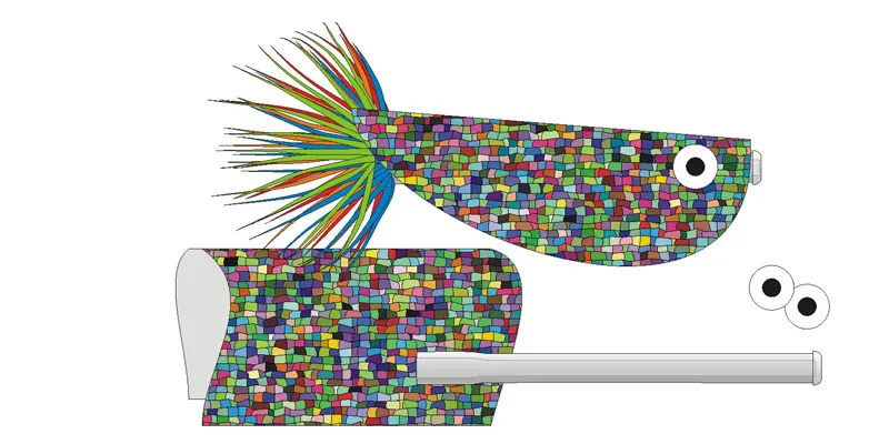 This is an example of a fly type with a massive body - in some ways a lure more than a fly. Such flies are often built on tubes using foil (like here), epoxy, silicone, glue, suede, foam, Softex or a combination of such materials.
