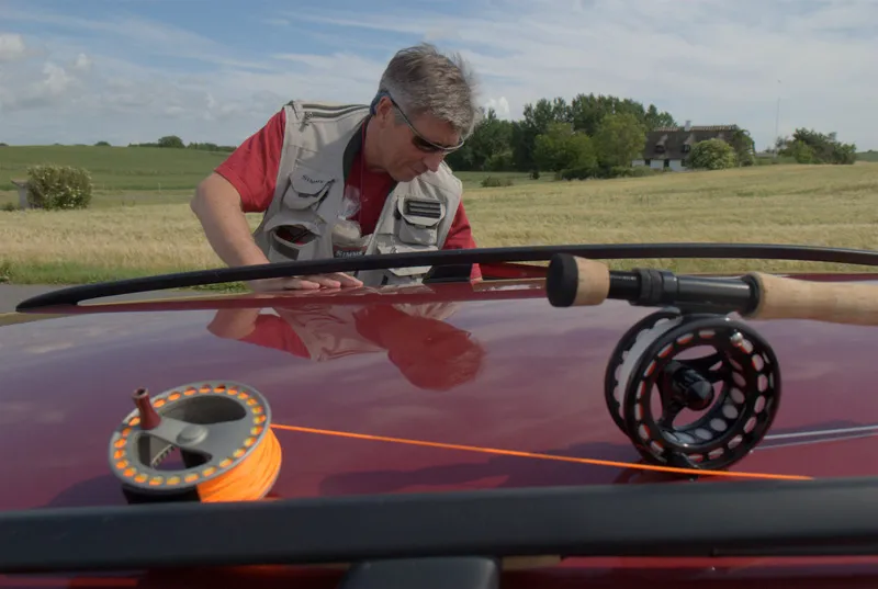 When getting the last things done and locking the car, its roof is a good place to keep the rods.
