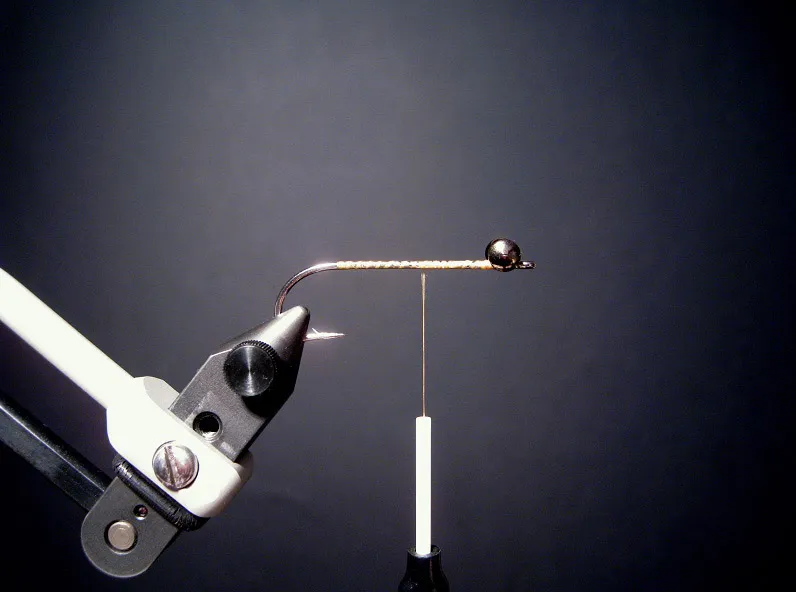 Secure the dumbbell eyes to the hook shank