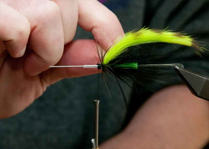 Wrap the hackle forwards in 2-3 close turns on top of the wing base