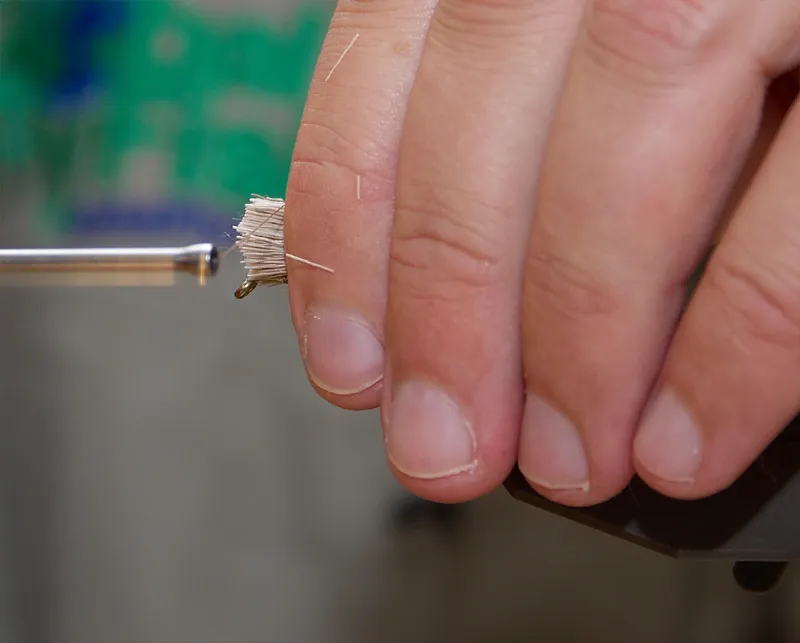 Hold the hair in position. Notice how the butts are trimmed already. Take two loose turns around the hair where you want it to flare.