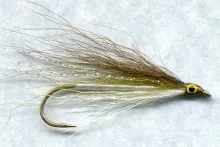 Tied by: Bob Petti Originated by: Lew Oatman Source: Streamer Fly Tying and Fishing Pg. 300 Hook: Mustad 3665A Thread: White Body: Pale cream floss...