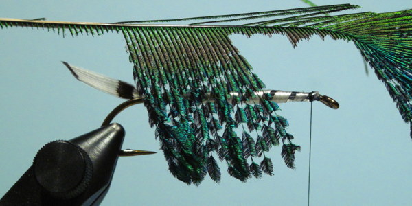 Throat: Two or three fibers of a peacock sword feather, reaching