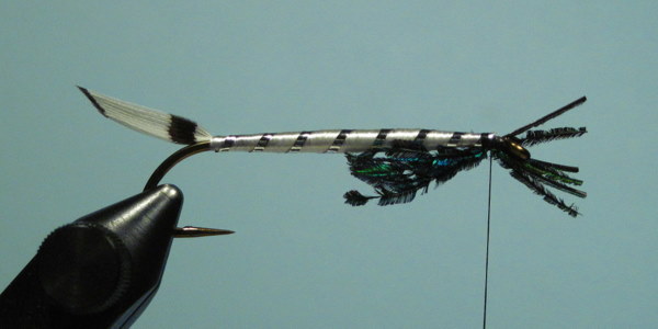 The finished fly with a coat of head cement, as effective a fishing fly as it is eye catching.