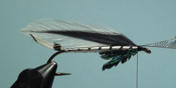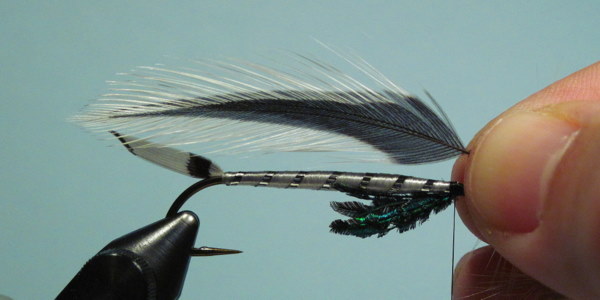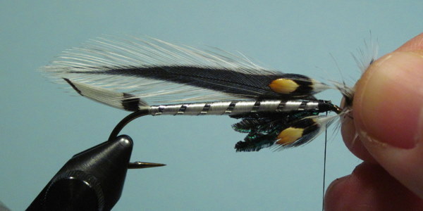 A pair of jungle cock eyes complete the fly. Oatman's flies sported fairly small and short eyes, so keep that in mind when selecting your feathers.