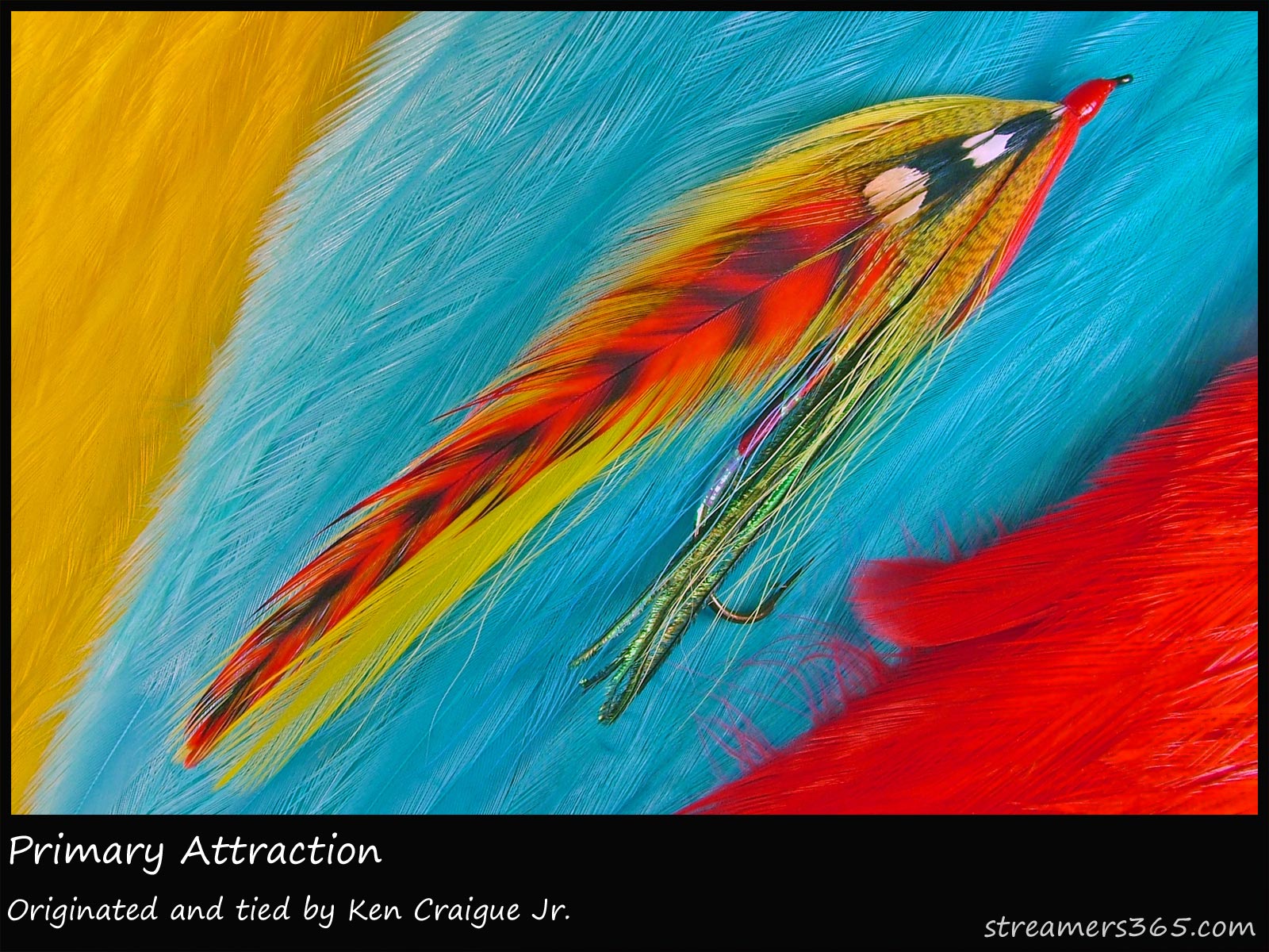 Notes: The Primary Attraction is one of several from a series of "Primary" flies designed by Ken in 2011. All of the streamers in the series use a red, yellow and blue color scheme, drawing on past creations such as the Footer's Special and Guide's Special. The red grizzly makes for nice parr marking on the side of the streamer and backed by the yellow provides a bright target for predators.