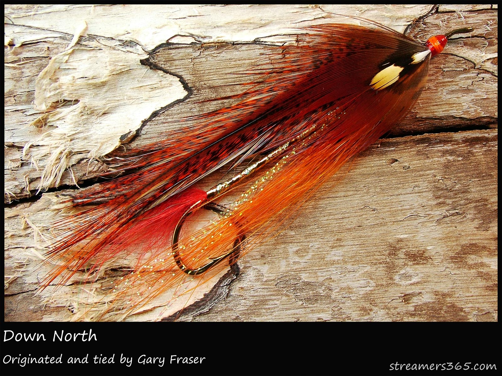 Down North - Gary Fraser Tied by: Gary Fraser Originated by: Gary Fraser Hook: Partridge CS15 #2 Thread: Red 70 denier Tag: Flat copper tinsel Tail:...