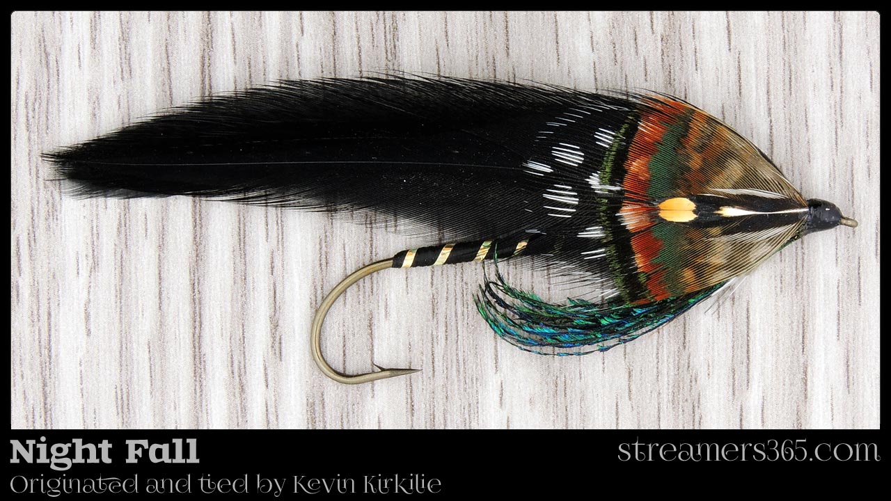 Night Fall - Kevin Kirkelie Tied by: Kevin Kirkelie Originated by: Kevin Kirkelie Night Fall streamer fly pattern recipe Hook: Gaelic Supreme Mike...