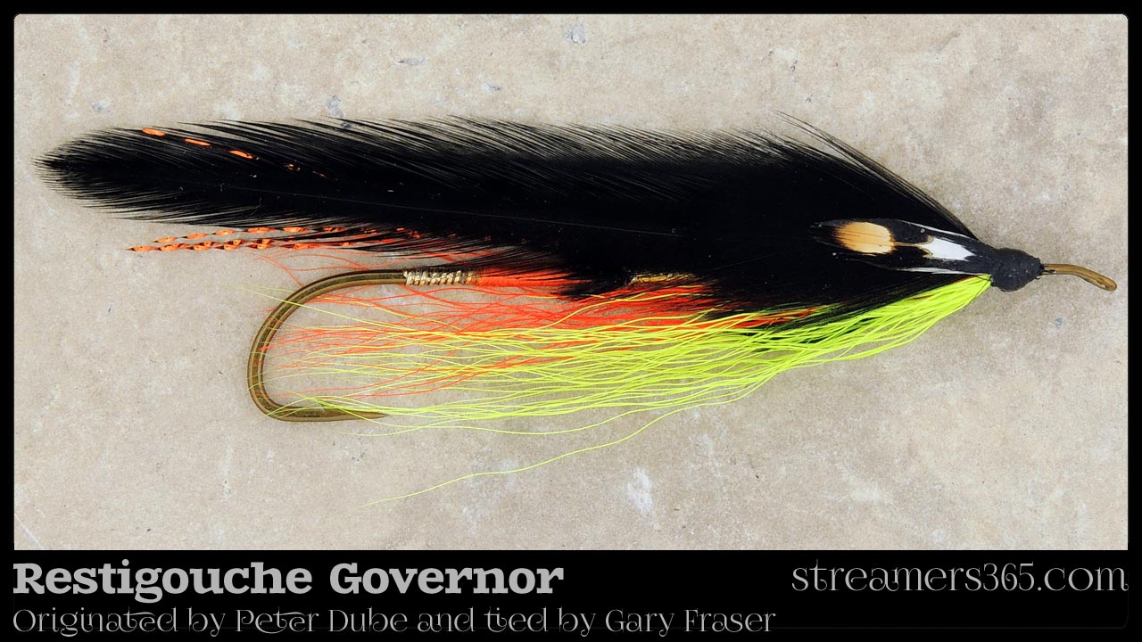 Restigouche Governor - Gary Fraser Tied by: Gary Fraser Originated by: Pete Dube Restigouche Governor streamer fly pattern recipe Hook: Partridge CS15...