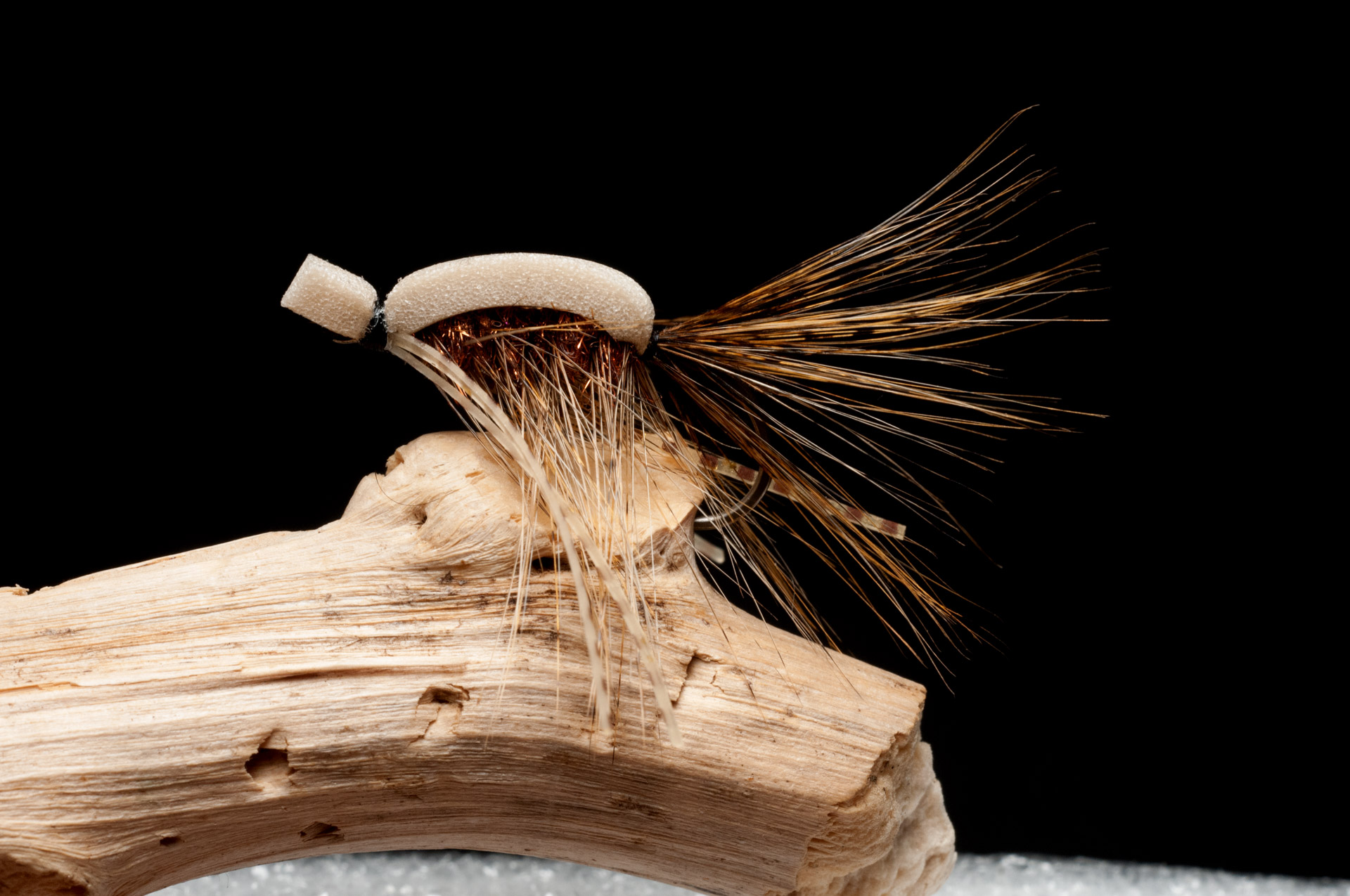 A fly tied during one of my biannual week long coastal trips in Denmark with good friends. Foam flies for sea trout is all the rage now, and this one using foam, Gallo de Leon (Coq de Leon or CdL) and rubber legs should be able to do the job.